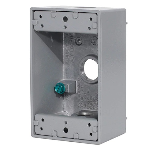 1GM53-GY Weatherproof Back Box, Die Cast Aluminum, Single Gang, 3 Outlets, 1/2 in NPT, 2.78 in H x 4.53 in W x 2.01 in D, with Mounting Hardware, Grey