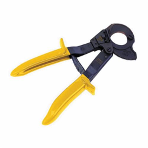 IDEAL® Cable Cutter, Ratcheting, 400 kcmil Cable/Wire, 14-1/2 in Overall Length, Round Jaw, 1-3/8 in Jaw, Hard Steel Jaw, Ergonomic Non-Slip Grip Handle, Aluminum, Hard Drawn Copper, Soft Copper and Multiple Conductor Cable Material Application, Yellow Handle