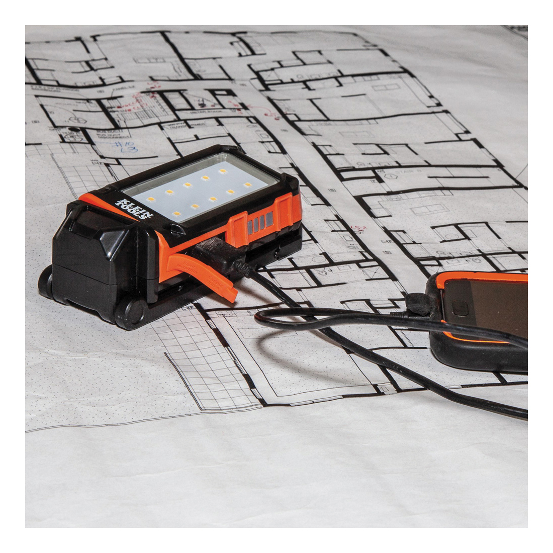 Klein Tools rechargeable personal worklight goes wherever you go. Not only does this hard-working light rotate completely while it stands, hangs, hooks, mounts and clips, it charges your phone too. You can easily check the battery life with the gauge, but don't worry, on high this worklight is a bright 460 lumens for a full 9 hr and 16 hr on the low setting. Easily charge the light with the included micro-USB.