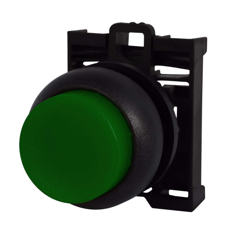 EATON RMQ-Titan® Illuminated Pushbutton Operator, Modular, Series: M22, 22.5 mm, Momentary Contact Mode, Extended Button Operator, LED Lamp, Bezel/Housing: Black, NEMA 4X/13/IP67/IP69K Enclosure, -13 to 158 deg F, Green