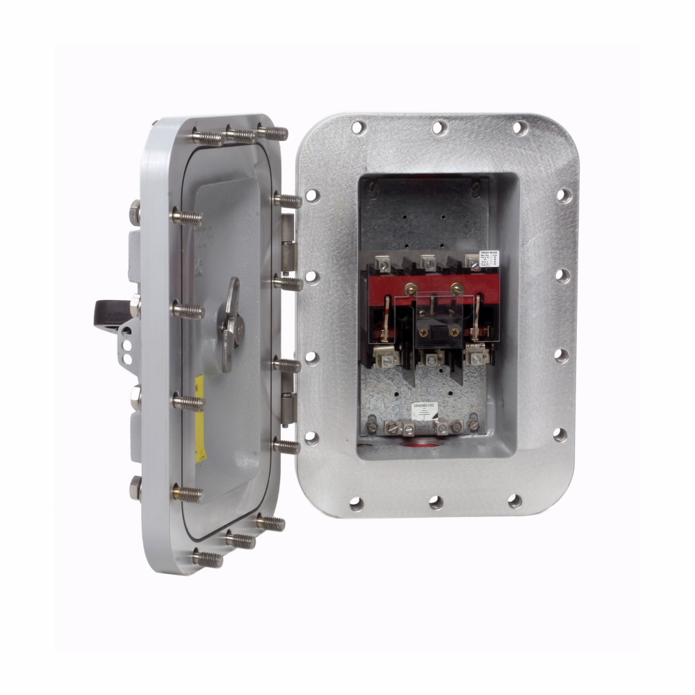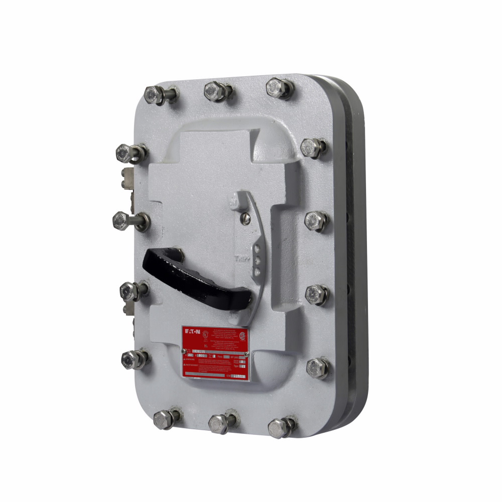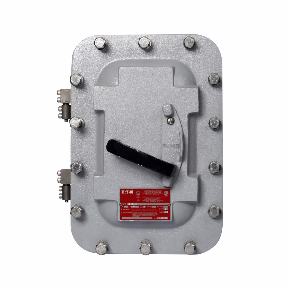 EATON Disconnect Switch, Heavy Duty Non-Fusible, 600/480 VAC, 250 VDC, 30 A, 5 hp, 15 hp, 20 hp, 3 Pole, TPST Contact Form, Handle Actuator, NEMA 7/9 Enclosure, Surface Mounting, Line/Load Terminal, 55 deg C, 9.74 in L x 10.47 in W x 12.47 in H Dimensions, Cast Aluminum
