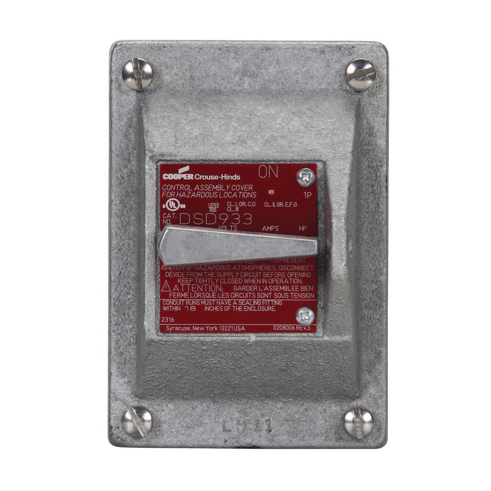 Crouse-Hinds Snap Switch Control Station, Explosionproof General Use, Series: DSD, 120/277 VAC, 20 A, 1 Pole, Front Operated Operator, NEMA 3/7B/7C/7D/9E/9F/9G NEMA Rating, Copper-Free Aluminum, Natural, 4.7 in L x 5.8 in W x 6.3 in H Dimensions