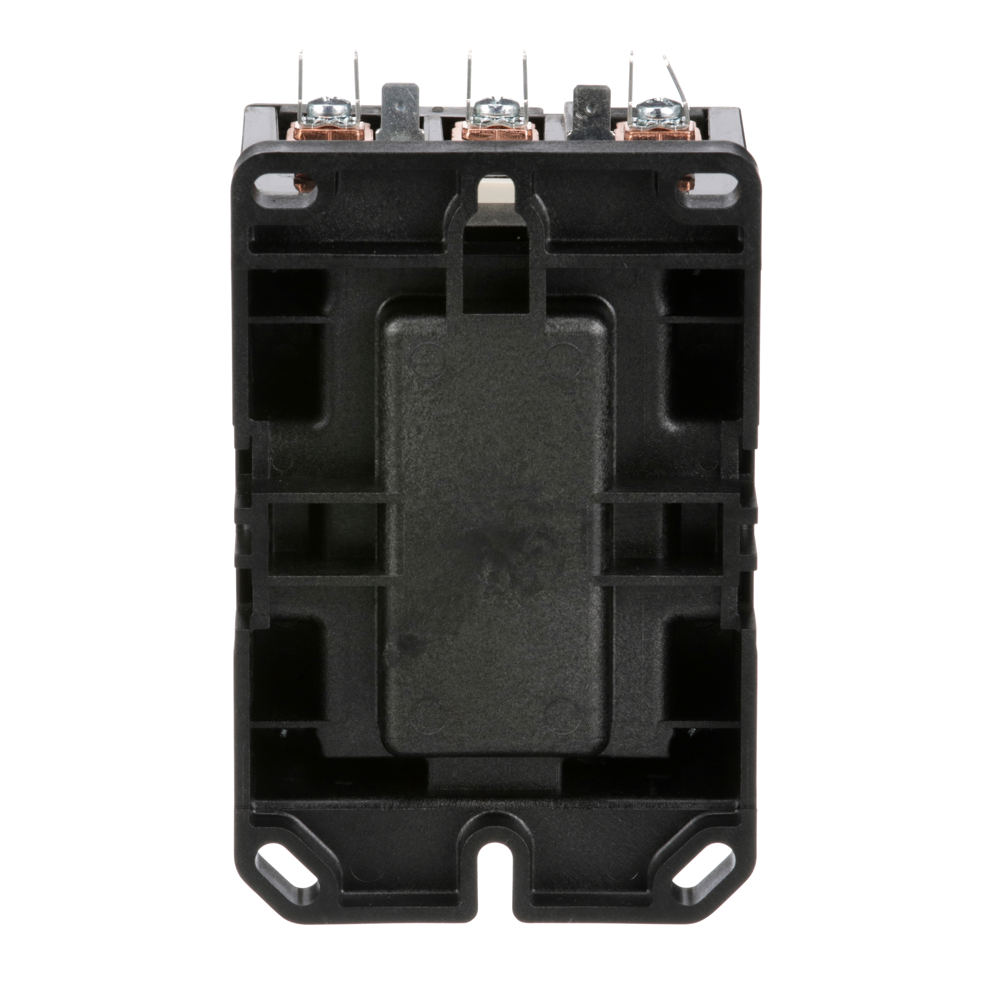 Square D™ 8910DPA93V02 magnetic contactor, definite purpose, for heating, air conditioning and refrigeration applications, 3-pole, 90 a (inductive) and 120 a (resistive) maximum at 600 V, 120 VAC, 60 Hz. Operating coil, UL recognized, CSA Certified, CE marked, open style, with type 1 enclosure and DIN mounting bracket available.