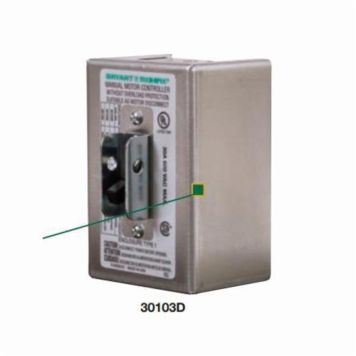 30103D Manual Motor Controller Starter Switch, Tech-Spec®, 600 VAC, 30 A, 20 HP, 3 Pole, 3 Phase, Industrial Grade, Standard Toggle, Side Wired, Suitable as Motor Disconnect, NEMA 1 Metal Enclosure