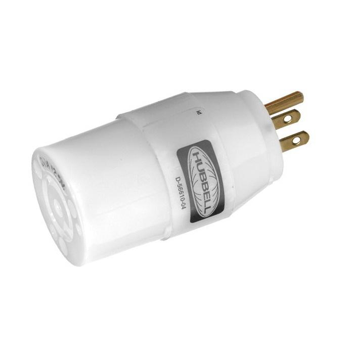 HBL2128 Convenience Plug In Adapter, Twist-Lock®, Locking Female Connector Body, 20 A, 125 VAC, to Straight Blade Male Plug, 15 A, 125 VAC, 2 Pole, 3 Wire, Single Phase, Grounding, Female Slot End L5-20R, Male Blade End 5-15P, White