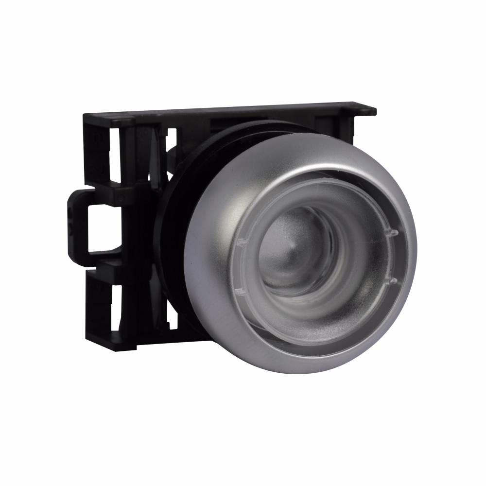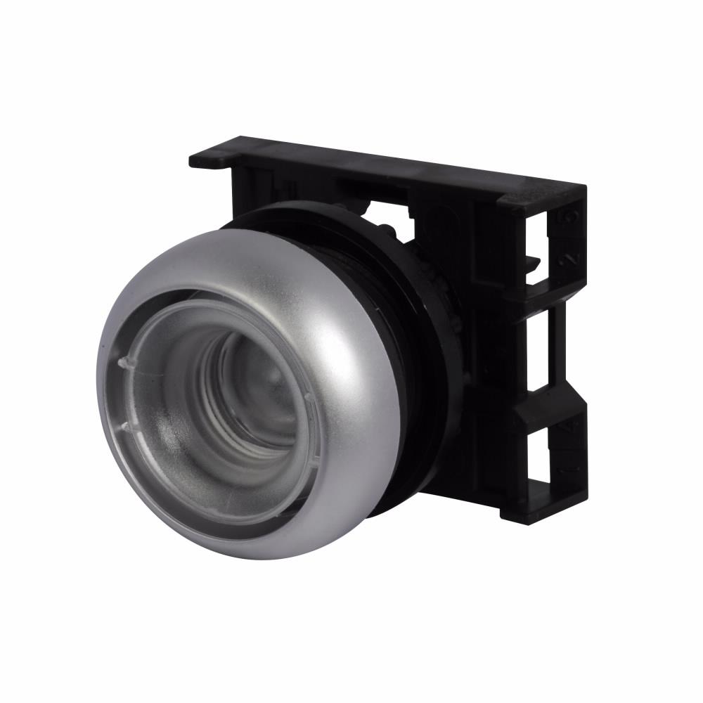 EATON RMQ-Titan® Illuminated Pushbutton Operator, Modular, Series: M22, 22.5 mm Size, Momentary Contact Mode, Flush Button Operator, LED Lamp, Bezel/Housing: Silver Bezel, NEMA 4X/13/IP67/IP69K Enclosure, -13 to 158 deg F