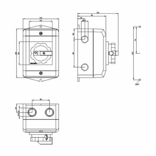Sentron™ Enclosed Disconnect Switch, Main, Series: 3LD, 690 VAC, 32 A, 50/60 Hz Frequency Rating, 3 Pole, 640 A Short Circuit, Rotary Actuator, IP65 Enclosure, Center Hole Mount, Box Terminal, -20 to 120 deg F Temperature Rating, 4 x 5 x 7 in Dimensions, Plastic Material, Black Handle Color