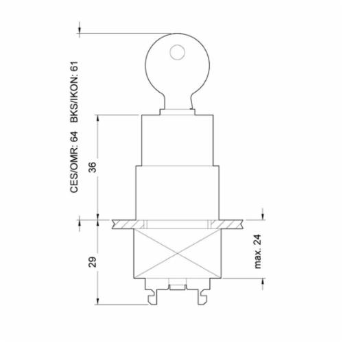 Siemens Selector Switch Operator, Non-Illuminated, 22 mm Size, Maintained Contact Mode, 2 Positions, Keyed Operator, NEMA 4X/IP67 Enclosure, Surface Mounting, -25 to 70 deg C