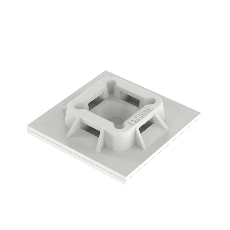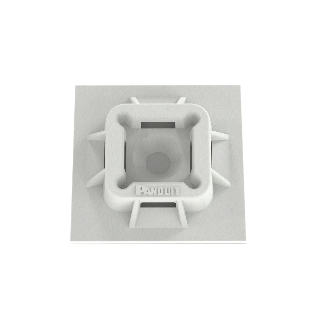 Panduit®, ABM100-AT-C, Cable Tie Mount, 4-Way Tie Entry, Acrylic Adhesive/Threaded Mounting, 0.2 in Maximum Tie Width, 1 in Base Length, 1 in Base Width, Nylon 6.6, White
