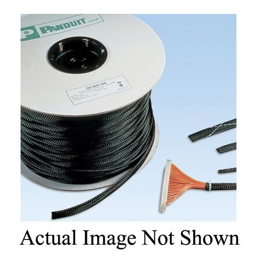 Panduit®, SE125P-LR0, Braided Sleeve, Expandable Flame-Retardant, 1-1/4 in Sleeve Diameter, 15.2 m/Reel Sleeve Length, 19.1 to 38.1 mm Diameter Cable, -94 to 257 deg F, Flammability: HB, Polyethylene Terephthalate, Black