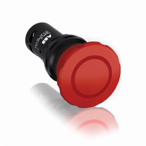 ABB Non-Illuminated Pushbutton, Compact, Series: CE4P, 0.03 mm H x 0.04 mm W x 0.073 mm D Size, 1NC-1NO Contact Configuration, 10 A at 250 VAC/VDC Contact, Pull Release Operator, Legend: Emergency Stop, Bezel/Housing: Plastic, Mushroom Head Actuator, Screw Terminal, NEMA 1/3R/4/4X/12/13/IP66/IP20 Enclosure, Panel Mounting, Plastic, Red/Black, Environmental Conditions: -25 to 70 deg C Operating Temperature