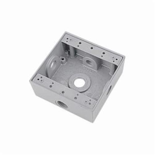 Red Dot® Weatherproof Box, Universal, 5 Outlets, 2 Gangs, 3/4 in Hub, 31.8 cu-in Capacity, Die Cast Aluminum, Powder Coated, Silver, 4-9/16 in L x 4-5/8 in W x 2-1/16 in D Dimensions