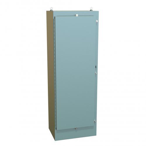 Hammond® Enclosure, Series: 1418 N4 FS, 25.06 in Width, 18.06 in Depth, 72.06 in Height, NEMA 3R/4/12/3/13/IP66 NEMA Rating, Hinged Cover, 32613.17 cu-in Capacity, Free-Standing/Floor Mounting, 12 ga Mild Steel, Powder Coated, Gray