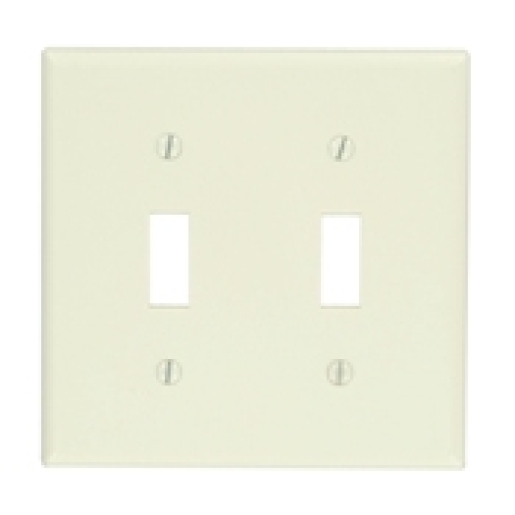 78009 Standard Size Traditional Wallplate, 2 Gang, 2 Toggle Switches, Device Mount, 4.50 in H x 4.56 in W, Thermoset Plastic, Light Almond