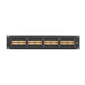 LevitonĀ® Patch Panel, 2-RU Flat, Series: 5G596, 48 Ports, Category: Cat 5e, 26 to 22 AWG Terminal, 110-IDC Terminal, Wiring Code: T568A/T568B, Rack Mounting, Plastic/14 ga Steel, Black