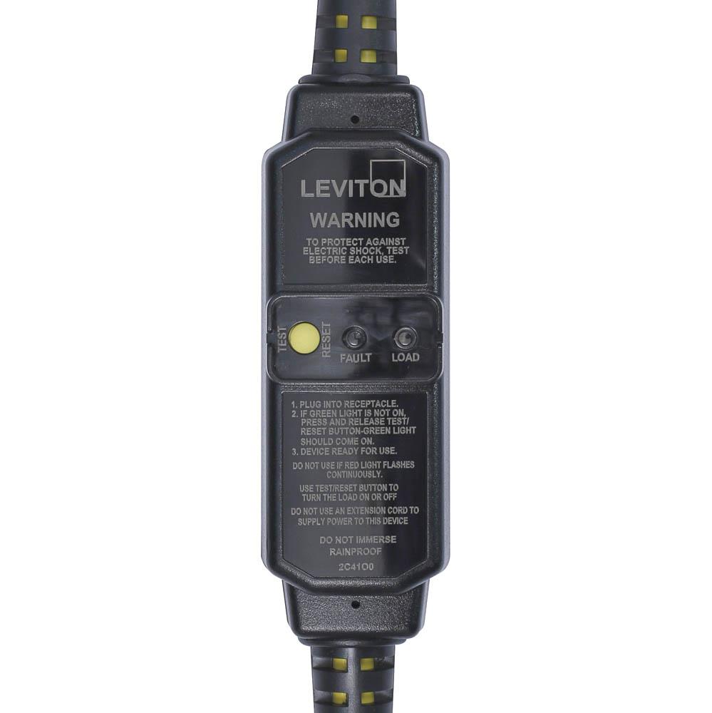 LevitonĀ®, GSCA1-2C, Self Test, Cord Set, Series: GSCA, 120 VAC, 15 A, 3/4 hp Power, 14/3 SJTW Cord, NEMA 5-15R Receptacle, NEMA 5-15P Plug, -35 to 66 deg C, Polycarbonate Jacket