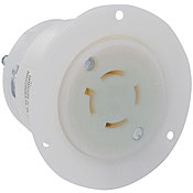 2416 Locking Flanged Outlet Female Receptacle, 125/250 VAC, 20 A, 3 Pole, 4 Wire, Industrial Grade, Grounding, L14-20R, White