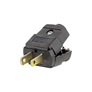 101-EP Cable Mount Straight Blade Male Plug, 125 VAC, 15 A, 2 Pole, 2 Wire, Residential Grade, Polarized, Non-Grounding, 1-15P, Black