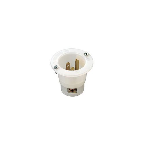 LevitonĀ®, 5278-C, Inlet Receptacle, Grounding, 125 VAC, 15 A, 1/2 hp, 2 Pole, 3 Wires, NEMA 5-15P NEMA Rating, Commercial/Industrial Grade, -40 to 60 deg C, Back Wire Terminal, Nylon, White, 2.5 in Dia x 1.78 in H Dimensions