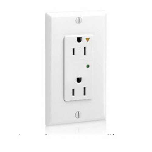 5280-IGW Decora Plus Straight Blade Surge Protective Isolated Ground Duplex Receptacle with Indicator Light, 125 VAC, 15 A, 2 Pole, 3 Wire, Commercial Specification Grade, Smooth Face, Back or Side Wire, Self Grounding, 5-15R, White