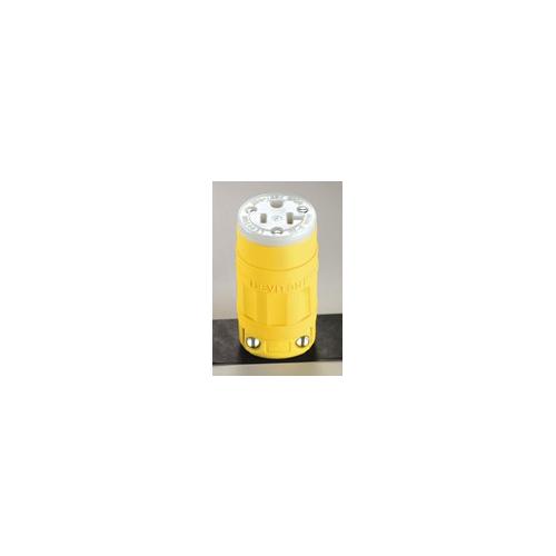 Leviton®, 1533, Straight Blade Connector, Cable Mount Grounding Severe Duty, 125 VAC, 20 A, 2 Pole, 3 Wires, NEMA 5-20R NEMA Rating, Industrial Grade, IP44 Enclosure, 0.25 to 0.685 in Diameter Cord, -40 to 60 deg C, Screw Terminal, TPV, Yellow, 1.54 in Dia x 3 in H Dimensions