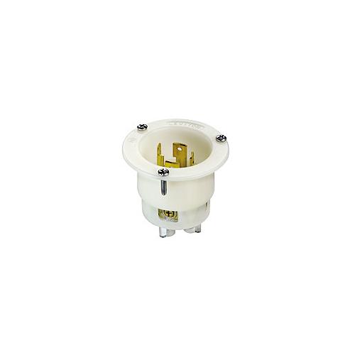 2715 Locking Flanged Inlet Male Receptacle, 125/250 VAC, 30 A, 3 Pole, 4 Wire, Industrial Grade, Grounding, L14-30P, White
