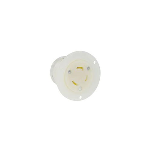 2626F Locking Flanged Outlet Female Receptacle, 250 VAC, 30 A, 2 Pole, 3 Wire, Industrial Grade, Grounding, L6-30R, White