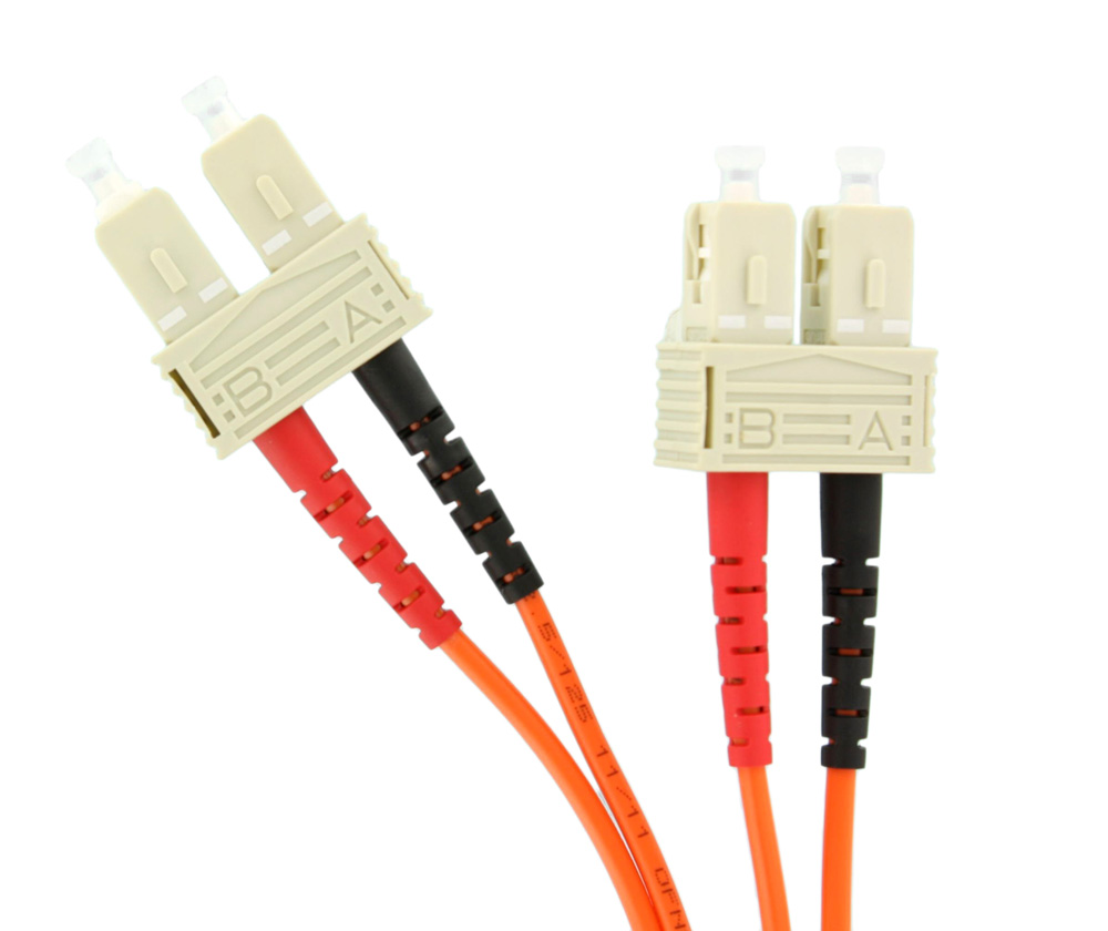 LevitonĀ® Fiber Optic Patch Cord, Duplex Multi-Mode, Series: Economy, 2 Fibers, 1 m Length, SC to SC Connector, 62.5/125 um Core, 3.5 dB at 850 N-M/1 dB at 1300 N-M Attenuation, Orange Jacket, -40 to 75 deg C