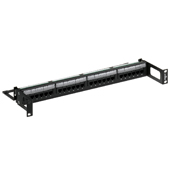 LevitonĀ® Patch Panel, 1-RU Flat Universal Recessed, Series: 5G596, 24 Ports, Category: Cat 5e, 26 to 22 AWG Terminal, 110-IDC Terminal, Wiring Code: T568A/T568B, Rack Mounting, Plastic/14 ga Steel, Black