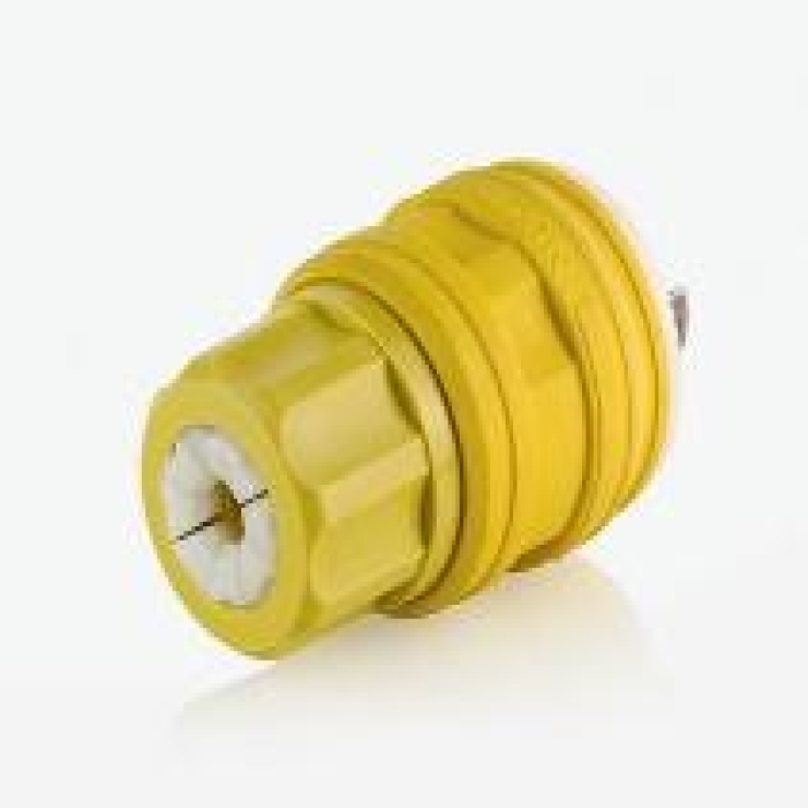 Wetguard® Straight Blade Plug, 1-Phase Cable Mount Grounding Watertight, 347 VAC, 15 A, 2 Pole, 3 Wires, NEMA 24-15P, Industrial Grade, NEMA 4/4X/12/IP66/IP67 Enclosure, 0.375 to 0.655 in Cord Dia, Screw Terminal, TPV, Yellow, 1.5 in Dia x 2.71 in L