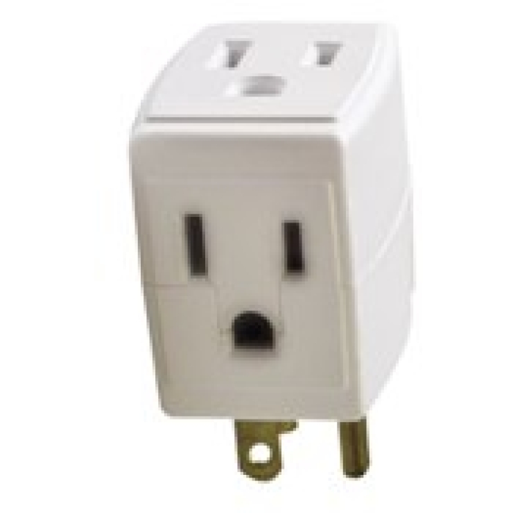 LevitonĀ® Triple Cube Adapter, Grounding, 125 VAC, 15 A, White