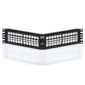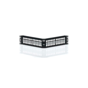 Atlas-X1™ shielded connectivity protects critical data from EMI (electromagnetic interference) and RFI (radio frequency interference). This makes it ideal for use in health care, manufacturing and other environments where EMI and RFI may be present. Leviton® 24 and 48-port shielded angled QuickPort® patch panels are designed to increase rack density on industry standard 19 in racks and cabinets. The unique 128 deg shape easily routes cables into vertical cable managers, minimizing the need for additional horizontal cable management.