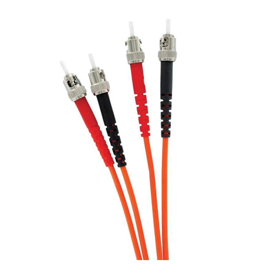 LevitonĀ® Fiber Optic Patch Cord, Duplex Multi-Mode, Series: Economy, 2 Fibers, 2 m Length, ST to ST Connector, 62.5/125 um Core, 3.5 dB at 850 N-M/1 dB at 1300 N-M Attenuation, Orange Jacket, -40 to 75 deg C