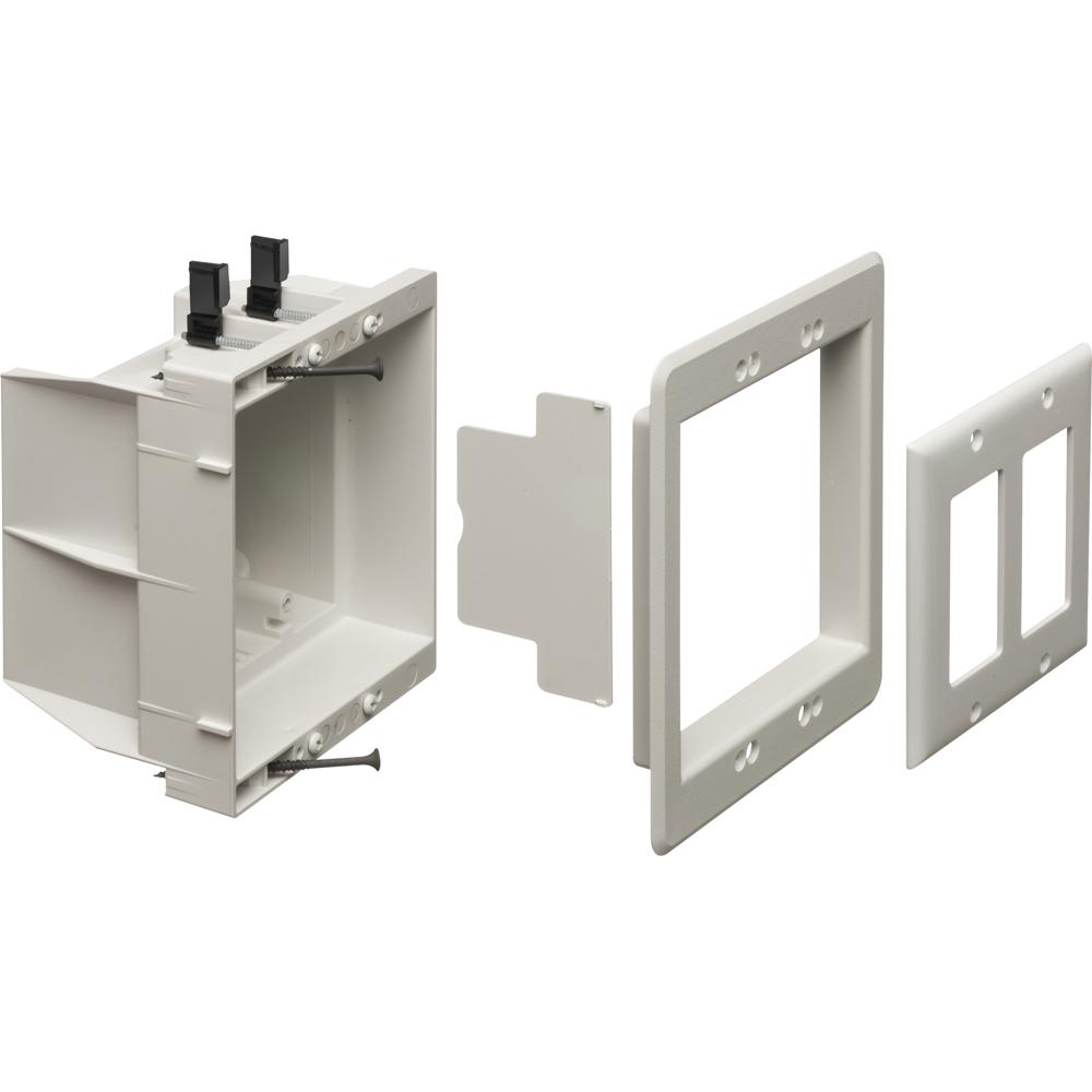 Arlington InBox™ Specialty Outlet Box, Recessed, 2 Gangs, Wall Mounting, 34 cu-in Capacity, Plastic, Textured, White, 6.012 in L x 6.69 in W x 3.875 in D Dimensions