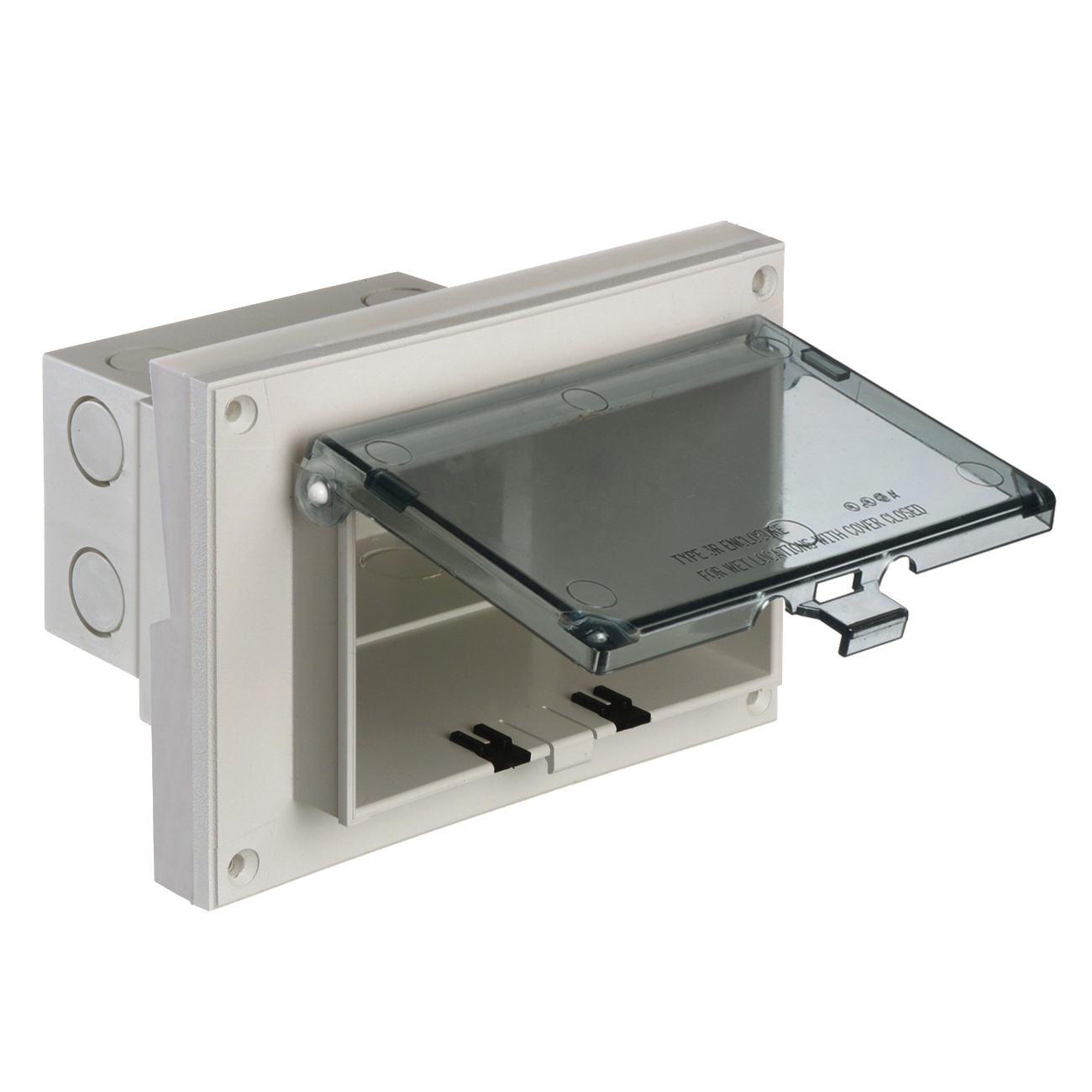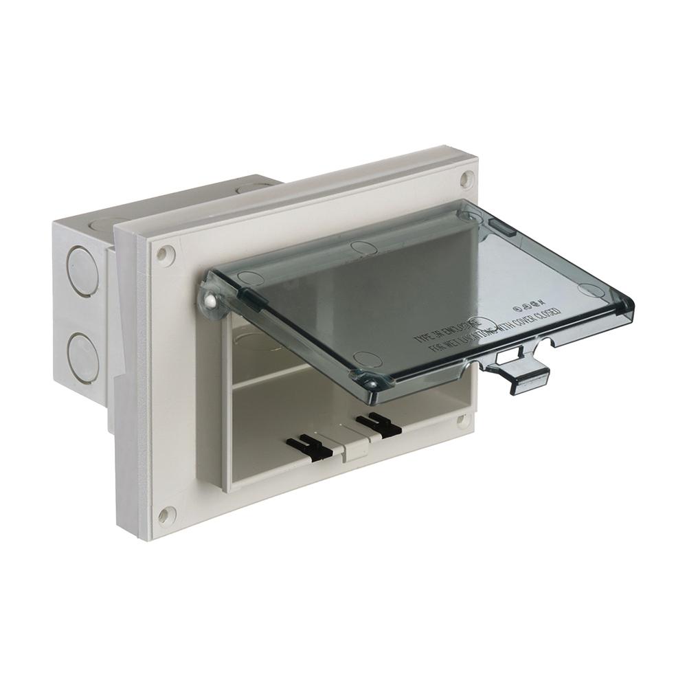 Arlington InBox™ Recessed Weatherproof Box, Horizontal Low Profile, 1 Gangs, 22 cu-in, Plastic, Textured/Painted, Clear/White, 4.937 in W x 0.875 in D x 7.188 in H