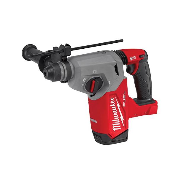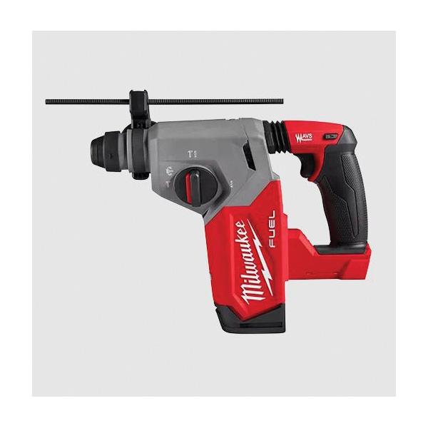 The MILWAUKEE® M18 FUEL™ 1" SDS Plus Rotary Hammer is the next generation of cordless rotary hammers delivering ultimate jobsite performance and productivity. The M18 FUEL™ 1" SDS Plus Rotary Hammer is the fastest drilling rotary hammer in its class, includes AUTOSTOP™ Control for enhanced safety, and can drill up to (125) 3/8" x 2" holes per charge when paired with the M18™ HIGH OUTPUT™ XC6.0 Battery. The POWERSTATE™ Brushless Motor delivers 2 ft-lbs of impact energy, 1,330 RPM, and 4,800 BPM, providing speed and power in the most demanding applications. REDLINK PLUS™ intelligence tool technology ensures maximum rotary drill performance and protects it from overload, overheating, and over-discharge. The M18™ REDLITHIUM™ HIGH OUTPUT™ XC6.0 Battery delivers 50% more power while running 50% cooler than the M18™ REDLITHIUM™ XC batteries. This hammer provides maximum control and enhanced safety with the AUTOSTOP™ Kickback Control. This feature prevents over-rotation if the tool gets bound up while drilling in rebar or hard aggregate. Milwaukee's AVS Anti-Vibration System minimizes vibration for maximum comfort.