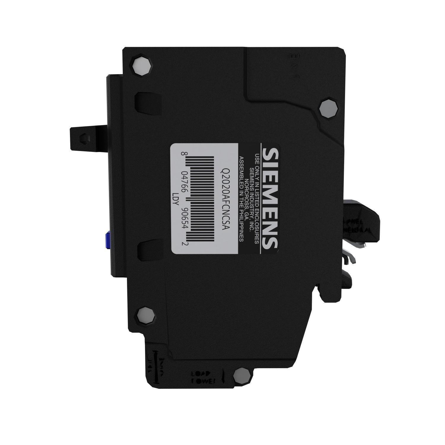 Siemens Canada, Q2020AFCNCSA, Arc Fault Circuit Breaker, Low Voltage Twin Tandem Combination, 120 V, 20 A, 10 kA Interrupt, QTAN Frame, Thermal Magnetic Trip, 200 to 350 A Trip, 1 Pole, Plug-In Connection, Plug-On Mounting, 3.3 in L x 1.1 in W Dimensions